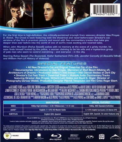 For the first time in High-definition, the critically-acclaimed triumph from visionary director Alex Proyas (I, Robot, The Crow) is back with featuring both the theatrical and never-before-seen director's cut versions of the film in premium picture and sound with five commentary tracks that take you deeper than ever before into the world of one of sci-fi's most exciting and revered tales.. When John Murdoch (Rufus Sewell) wakes with no memory at the scene of a grisly murder, he soon finds himself hunted by the police, a woman claiming to be his wife and a mysterious group of pale men who seem to control everything and everyone in the city. Starring Rufus Sewell (The Illusionist), Kiefer Sutherland (TV's 24), Jennifer Connelly (A Beautiful Mind) and William Hurt (A History Of Violence). |