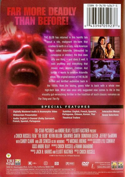 Scream now while you can still breathe!"The Blob" has returned in this horrific tale about a vile, malignant life-form that crashes to earth in a cozy, rural American town called Arborville. Untroubled by conscience or intellect, the Blob does only one thing - and it does it well. It eats anything and everything that moves: men, women, children. And tonight it wants to swallow Arborville whole. The original version of The Blob thrilled and terrified audiences back in the 1950s. Now the oozing, gooey killer is back with a whole new high-tech look. What was once only suggested now comes to life in this visually gut-wrenching thriller in the tradition of such classic remakes as "The Thing" and "The Fly." |