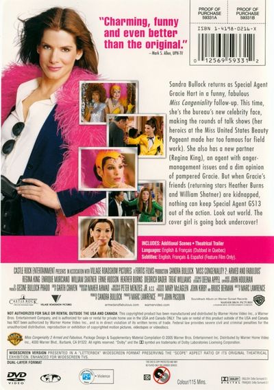 Sandra Bullock returns as Special Agent Gracie Hart in a funny, fabulous Miss Congeniality follow up. This time, she's the bureau's new celebrity face, making the rounds of talk shows (her heroics at the Miss United States Beauty Pageant made her too famous for field work). She also has a new partner (Regina King), an agent with anger-management issues and a dim opinion of pampered Gracie. But when Gracie's friends (returning stars Heather Burns and William Shatner) are kidnapped, nothing can keep Special Agent GS13 out of the action. Look out world. The cover girl is going back undercover! |