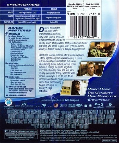 Denzel Washington, producer Jerry Bruckheimer and director Tony Scott ignite a firestorm of excitement with Déjà Vu on Blu-ray Disc®. This powerful, fast-paced action-thriller will "keep you bolted to your seat" (Pete Hammond, Maxim) as it blows you away in this jaw-dropping format. Called in to recover evidence after a horrific explosion, Federal agent Doug Carlin (Washington) is taken to a top-secret government lab that uses a time-shifting device to help prevent crime. But can it change the past? Negotiate every mind-bending twist and turn with visually spectacular 1080p, while the walls tremble around you in 5.1 48 kHz, 24-bit uncompressed audio. You'll have a blast experiencing it again and again in Blu-ray High Definition! |