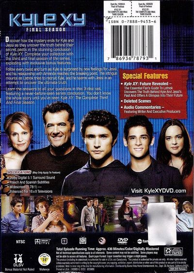 Discover how the mystery ends for Kyle and Jessi as they uncover the truth behind their secret pasts in the stunning conclusion of Kyle XY. Complete your collection with the third and final season of the series, exploding with exclusive bonus features.Follow every twist and turn as Kyle is surprised by new feelings for Jessi, and his relationship with Amanda reaches the breaking point. The intrigue mounts as Latnok tries to recruite Kyle, and he teams with Jessi in an attempt to uncover the ultimate truth.Learn the answers to all your questions in this 3-disc set, featuring a never-before-seen series conclusion. You don't know the whole story until you've seen Kyle XY: The Complete Third And Final Season. |