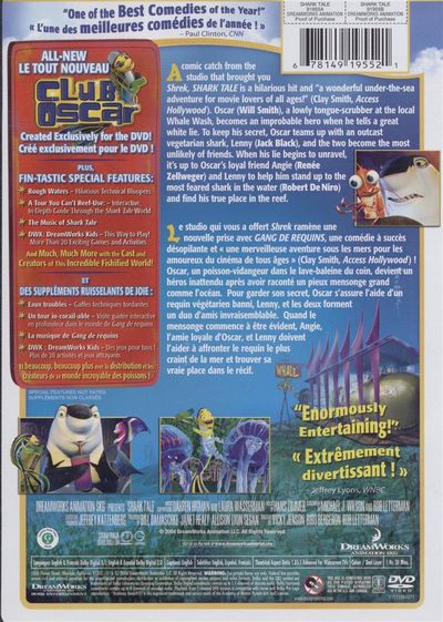Oscar (Will Smith), a lowly rongue-scrubber at the lacal Whale Wash, becomes an improbable hero when he talls a great white lie. To keep his secret, Oscar teams up with an outcast vegetarian shark, Lenny (Jack Black), and the two become the msot unlikely of friends. When his lie begins to unravel, iot;s up to Oscar's loyal friend Angie (Renee Zallweger) and Lenny to help him stand up to the most feared shark in the water (Robert De Niro) and find his true place in the reef. |