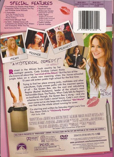 Raised in the African bush contry by her zoologist parents, Cady (Lindsay Lohan) thinks she knows all about the "survival of the fittest." But the law of the jungle takes on a whole new meaning when the home-schooled 15-year-old enters public school for the first time.Trying to find her place among jocks, mathletes and oher subcultures, Cady crosses paths with the meanest species of all - the Queen Bee, aka the cool and calculating Regina (Rachel McAdams), leader of the schools's most fashionable clique, The Plastics. When Cady falls for Regina's es-boyfriend, though, the Queen Bee is stung - and she schemes to ruin Cady's social future. Cady's own claws soon come out as she leaps into a hilarious "Girls World" war that has the whole school running for cover.Co-starring and written by Saturday Night Live's Tina Fey, Mean Girls is "Viciously Funny" - Neil Turiz, Star |