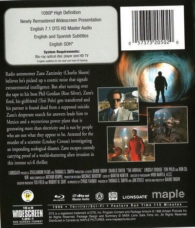Radio astronomer Zane Zaminsky (Charlie Sheen) believes he's picked up a cosmic noise that signals extraterrestrial intelligence. But after turning over the tape to his boss Phil Gordian (Ron Silver), Zane's fired, his girlfriend (Teri Polo) gets transferred and his partner is found dead from a supposed suicide. Zane's desperate search for answers leads him to Mexico and a mysterious power planet that is generating more than electricity and is run by people who are not what they appear to be. Arrested for the murder of a scientist (Lindsay Crouse) investigating an impending ecological disaster, Zane escapes custody carrying proof of a world-shattering alien invasion in this intense sci-fi thriller. |