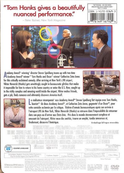 Academy Award winning director Steven Spielberg teams up with two-time Academy Award winner Tom Hanks and Oscar winner Catherine Zeta-Jones (Chicago) for this critically acclaimed comedy. after arriving at New York's JFK airport, Viktor Navorski (Hanks) gets unwittingly caught in bureaucratic glitches that make it impossible for him to return to his home country or enter the U.S. Now, caught up in the richly complex and amusing world inside the airport, Viktor makes friends, gets a job, finds romance and ultimately discovers America itself. |