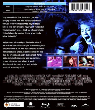 Strap yourself in for Final Destination 3, the most terrifying thrill ride ever! After Wendy and her friends survive a deadly roller coaster ride, they start being killed in even more gruesome ways. Wendy realizes that the nightmare isn't over.... Death has returned to finish the job. But can she convince the rest of her friends before it's too late? |