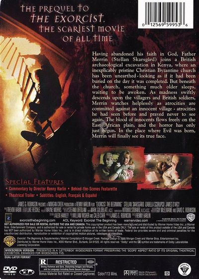 Having abandoned his faith in God, Father Merrin (Stellan Skarsgard) joins a British archaeological excavation in Kenya, where an inexplicably pristine Christian Byzantine Church has been unearthed - looking as if it had been buried on the day it was completed. But beneath the church, something much older sleeps, waiting to be awoken. As madness swiftly descends upon the villagers and British soldiers, Merrin watches helplessly as atrocities he had seen before and prayed never to see again. The blood of innocents flows freely on the East African plain, and the horror has only just begun. In the place where Evil was born, Merrin will finally see its true face. |