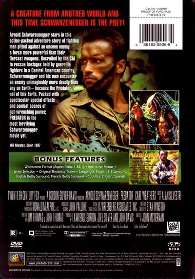 Arnold Schwarzenegger stars in this action-packed adventure story of fighting men pitted against an unseen enemy, a force more powerful than their fiercest weapons. Recruited by the CIA to rescue hostages held by guerrilla fighters in a Central American country, Schwarzenegger and his men encounter an enemy unimaginably more deadly than any on Earth - because the Predator is not of this earth. Packed with spectacular special effects and combat scenes of gut-wrenching power, PREDATOR is the most terrifying Schwarzenegger movie yet. |