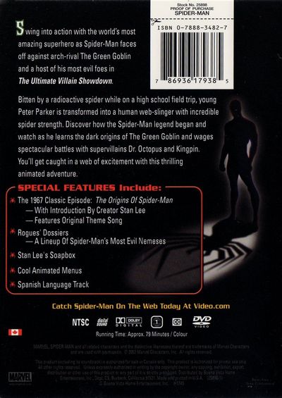 Swing into action with America's most amazing superhero as Spider-Man faces off against arch-rival The Green Goblin and a host of his most evil foes in The Ultimate Villain ShowdownBitten by a radioactive spider while on a high school field trip, young Peter Parker is transformed into a human web-slinger with incredible spider strength. Discover how the Spider-Man legend began and watch as he learns the dark origins of The Green Goblin and wages spectacular battles with supervillains Dr. Octopus and Kingpin. You'll get caught in a web of excitement with this thrilling animated adventure.