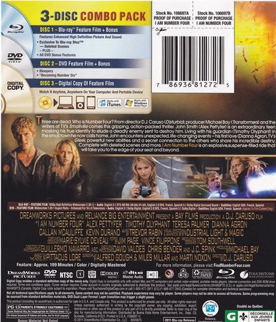 Three are dead. Who is Number Four? From Director D.J. Caruso (Disturbia), producer Michael Bay (Transformers) and the writers of TV's Smallville comes this gripping, action-packed thriller. John Smith (Alex Pettyfer)is an extrordinary teen masking his true identity to elude a deadly enemy sent to destroy him. Living with his guardian (Timothy Olyphant) in the small town he now calls home. John encounters unexpected, life-changing events - his first love (Dianna Agron, TV's Glee) powerful new abilities and a secret connection to the others who share his incredible destiny. Complete with deleted scenes and more. I Am Number Four is an explosive-filled ride that will take you to the edge of your seat and beyond. |