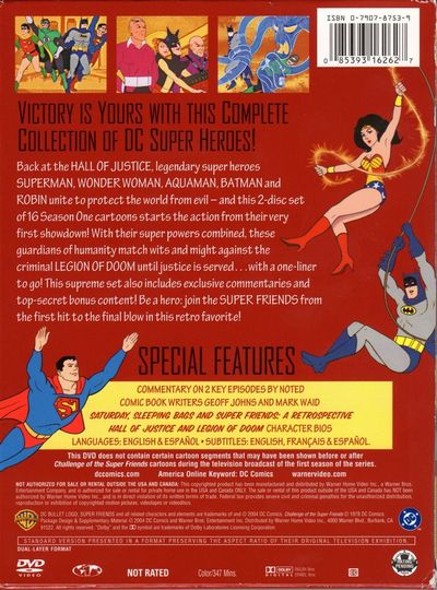 Back at the Hall Of Justice, legendary super heroes Superman, Wonder Woman, Aquaman, Batman and Robin unite to protect the world from evil, and this two disc set of 16 Season One episodes starts the action from their very first showdown! With their superpowers combined, these guardians of humanity match wits and might against the criminal Legion Of Doom until justice is served with a one-liner to go! This supreme set also includes exclusive commentaries and top-secret bonus content! Be a hero: join the Super Friends from the first hit to the final blow in this retro favorite!¥