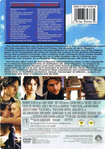 Tom Cruise delivers one of his finest performances in this unforgettably powerful film that reunites him with Cameron Crowe, the director of Jerry Maguire.Young, handsome and wealthy, publishing tycoon David Aames (Cruise) can have anything his heart desires. Still, David's charmed life seems incomplete. One night, David meets the woman of his dreams (Penelope Cruz) and believes he may have found the missing piece. But a fateful encounter with a jealous lover (Cameron Diaz) suddenly sends David's world out of control, rocketing him on a roller-coaster ride of romance, sex, suspicion and dreams… to a shocking, final awakening you will never forget. |