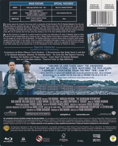 Few movies capture the triumph of the human spirit as memorably as Frank Darabont's film The Shawshank Redemption, from the same Stephen King story collection that gave us "Stand by Me". Morgan Freeman plays Red, a lifer who knows to cope with the bleak hopelessness of Shawshank State Prison. Tim Robbins play a new inmate Andy, a quiet banker convicted of murder he didn't commit – and whose indomitable will earns Red's respect and friendship. Andy resourcefulness brings hope and change to the entire prison. He's full of surprises. And the best come last, leading to one of the most satisfying finales in film history. |