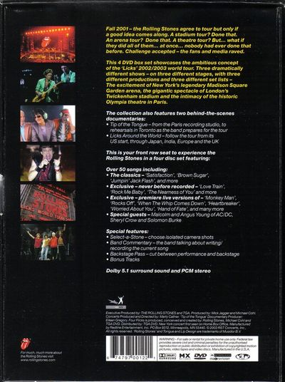 Fall 2003 - The Rolling Stones are playing the final shows of thier "Licks" 2002/03 world tour. The band has been on the road for over a year playing three different show in sold-out stadiums arenas and theaters around the world. Cameras rolled - at the shows, backstage and behind the scenes...and this is your all access pass! |