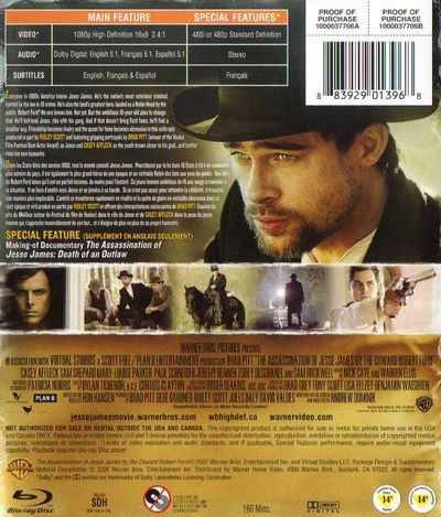 Everyone in 1880’s America knows Jesse James. He’s the nation’s most notorious criminal, hunted by the law in 10 states. He’s also the land’s greatest hero, lauded as a Robin Hood by the public. Robert Ford? No one knows him. Not yet. But the ambitious 19-year-old aims to change that. He’ll befriend Jesse, ride with his gang. And if that doesn’t bring Ford fame, he’ll find a deadlier way. Friendship becomes rivalry and the quest for fame becomes obsession in this virile epic produced in part by RIDLEY SCOTT and featuring gripping portrayals by BRAD PITT (winner of the Venice Film Festival Best Actor Award) as Jesse and CASEY AFFLECK as the youth drawn closer to his goal… and farther from his own humanity.Dans les États-Unis des années 1880, tout la monde connait Jesse James. Pourchassé par la loi dans 10 États à titre de criminal le plus notoire du pays, ils est égelament le plus grand heros de son époque et un véritable Robin des bois aux yeux du public. Que dire Robert Ford sinon qu'il est un parfait inconnu, dumoins pour l'instant. Ce jeune home ambitieux de 19 ans songe à remédier à la situation. Il se liera d'amité avec Jesse et se joidra à sa bande. Si ce n'est pas assez pour atteindre la célébrité, il trouvera une manière plus implacable. L'amité se transforme rapidement en rivalité et la quête de gloire en véritable obsession dans ce récit epique et viril produit en partie par RIDLEY SCOTT et offrant des interprétation saisissants de BRAD PITT (lauréate du prix du Meilleur acteur du Festival du film de Venise) dans le rôle de Jesse et de CASEY AFFLECK dans la peau du jeune home qui s'approache inexorablement de son but… et s'éloigne de plus en plus de sa proper humanité.