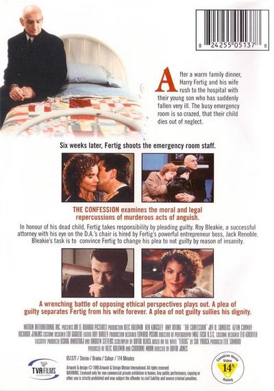 After a warm family dinner, Harry Fertig and his wife rush to the hospital with their young son who has suddenly fallen very ill. The busy emergency room is so crazed, that their child dies out of neglect.Six weeks later, Fertig shoots the emergency room staff.THE CONFESSION examines the moral and legal repercussions of murderous acts of anguish.ln honour of his dead child, Fertig takes responsibility by pleading guilty. Roy Blealiie, a successful attorney with his eye on the D.A's chair is hired by Fertig’s powerful entrepreneur boss, Jack Renoble.Bleakie’s task is to convince Fertig to change his plea to not guilty by reason of insanity.A wrenching battle of opposing ethical perspectives plays out. A plea ofguilty separates Fertig from his wife forever. A plea of not guilty sullies his dignity. |