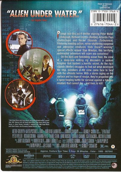 Plunge into this go-for-the-jugular sci-fi thriller starring Peter Weller (Robocop) and Richard Crenna (Rambo). Featuring nonstop action, nerve-shattering suspense and awesome creatures from the Oscar)-winning special effects wizard (Stan Winston) who brought dinosaurs to life in Jurassic Park and The Lost World, this terrifying underwater adventure will scare you senseless! On the dark and forbidding ocean floor, the crew of a deep-sea mining rig discovers a sunken freighter that harbors a deadly secret: a genetic experiment gone horribly wrong. With a storm raging on the surface and no hope of rescue, the captain (Weller) and his team are propelled into a spine-tingling battle for survival against the ultimate foea hideous monster thatcannot die...and lives to kill!