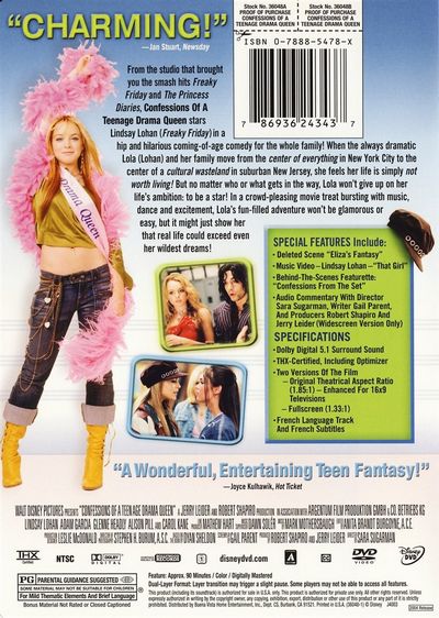 From the studio that brought you the smash hits Freaky Friday and The Princess Diaries, Confessions Of A Teenage Drama Queen stars Lindsay Lohan (Freaky Friday ) in a hip and hilarious coming-of-age comedy for the whole family! When the always dramatic Lola (Lohan) and her family move from the center of everything in New York City to the center of a cultural wasteland in suburban New Jersey, she feels her life is simply not worth living! But no matter who or what gets in the way, Lola won't give up on her life's ambition: to be a star! In a crowd-pleasing movie treat bursting with music, dance and excitement, Lola's fun-filled adventure won't be glamorous or easy, but it might just show her that real life could exceed even her wildest dreams! |
