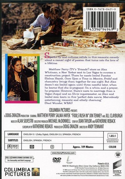 Sparks fly and cultures collide in this romantic comedy about a casual night of passion that turns into the love of a lifetime.Matthew Perry stars as Alex Whitman, a New Yorker sent to Las Vegas to oversee a construction project. There he meets Isabel Fuentes, and some serious chemisry brings them together for one night. But Alex doesn't see Isabel again until three months later, when he learns she is pregnant. On a whim, and a prayer, he proposes. However, there is more to this marriage than a Vegas chapel and an Elvis impersonator, as Alex and Isabel soon learn in this "perfect date movie. Marvelously entertaining, romantic and utterly charming" |