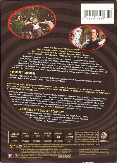 From the creative genius of Irwin Allen ("Lost in Space," "Voyage to the Bottom of the Sea," The Poseidon Adventure and The Towering Inferno) comes one of the most popular and original Sci-Fi shows of the 1960s!Determined to prove that Project Tic Toc was capable of sending humans through time, Dr. Tony Newman and Dr. Doug Phillips entered the project's time tunnel before final tests were completed. Now, caught in time and unable to return home, the two scientists battle to stay alive as the Vortex of Time thrusts them into the middle of some of the most significant events in world history. But even more important, as the time travelers encounter famous and influentual people of the past, they must make sure their actions don't inadvertently change history and alter the future.4-Disc Set Includes: