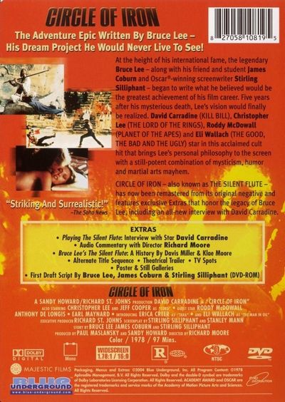 At the height of his international fame, the legendary Bruce Lee - along with his friend and student James Coburn and Oscar-winning screenwriter Stirling SiLLiphant - began to write what he believed would be the greatest achievement of his film career. Five years after his mysterious death, Lee’s vision would finally be realized. David Carradine (KILL BILL), Christopher Lee (THE LORD OF THE RINGS), Roddy McDowal( (PlANET OF THE APES) and ELI Wallach (THE GOOD, THE BAD AND THE UGLY) star in this acclaimed cult hit that brings Lee’s personal philosophy to the screen with a still-potent combination of mysticism, humbr and martial arts mayhem. |