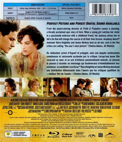 From the award winning director of Pride & Prejudice comes a stunning, critically acclaimed epic story of love. When a young girl catches her sister in a passionate embrace with a childhood friend, her jealousy drives her to tell a lie that will irrevocably change the course of all their lives forever. Academy Award® nominee Keira Knightley and James McAvoy lead an all star cast in the film critics are calling "the year's best picture" (Thelma Adams, US Weekly). |