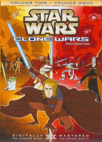 The Emmy Award-winning animated series continues with Star Wars: Clone Wars Volume Two, available for the first time on DVD. Directed by Genndy Tartakovsky, this series captures George Lucas' vision in a dynamic animated style that is a visual delight for all ages. As seen on Teletoon, Star Wars: Clone Wars Volume Two concludes the epic adventures that bridge the story betwen Star Wars: Episode II Attack of the Clones and Star Wars: Episode III Revenge of the Sith. Witness firsthand the trials of Anakin Skywalker and the secret ceremony in which he becomes a Jedi Knight. Then, follow the Jedi as they attempt to repel a surprise attack by General Grievous on the galactic capital, Coruscant. Clone Wares Volume Two is filled with exciting galactic battles that lead directly to the begining of the Sith. You'll complete the circle when you add this disc to your Star Wars DVD collection. |