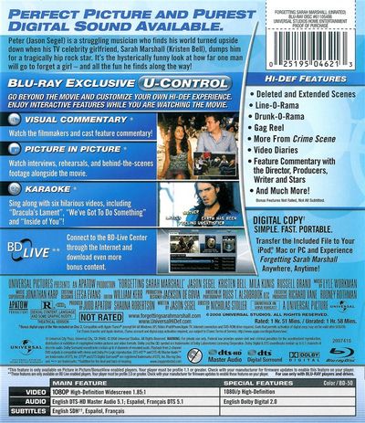 You Lose Some. You Get Some.Peter (Jason Segel) is a struggling musician who finds his world turned upside down when his TV celebrity girlfriend, Sarah Marshall (Kristen Bell), dumps him for a tragically hip rock star. It's the hysterically funny look at how far one man will go to forget a girl - and all the fun he finds along the way! |