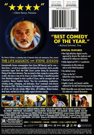 Internationally famous oceanographer Steve Zissou (Bill Murray) and his crew - Team Zissou - set sail on an expedition to hunt down the mysterious, elusive, possibly non-existent jaguar shark that killed Zissou's partner during the documentary filming of their latest adventure. They are joined on their voyage by a young airline co-pilot who may or may not be Zissou's son, (Owen Wilson), a beautiful journalist (Cate Blanchett) assigned to write a profile of Zissou, and his estranged wife and co-producer, Eleanor (Anjelica Huston). They face overwhelming complications including pirates, kidnapping and bankruptcy. Oscar-nominated writer-director Wes Anderson (2001, The Royal Tenenbaums, Best Original Screenplay) has assembled an all-star cast that includes Willem Dafoe, Jeff Goldblum, Michael Gambon, Noah Taylor, and Bud Cort for this wildly original adventure-comedy. |