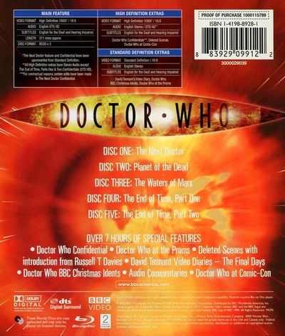 Films Include The Next Doctor Christmas Eve, 1851, and the Cybermen stalk the snow of Victorian London. When the Doctor arrives and starts to investigate a spate of mysterious deaths, he's surprised to meet another Doctor and soon, the two must combine to defeat the ruthless Miss Hartigan. But are two Doctors enough to stop the rise of the CyberKing? Planet Of The Dead When a London bus travels through a worm-hole to an alien worm-hole to an alien world, the Doctor must join with the mysterious, aristocratic Lady Christina to help the unfortunate passengers, and themselves, get back home. But the mysterious planet holds terrifying secrets, hidden in the sand. And time is running out, as the deadly swarm gets closer... The Waters Of Mars Mars, 2059. Bowie Base One. Last recorded message: "Don't drink the water. Don't even touch it. Not one drop"... all will be revealed in The Waters of Mars starring Lindsay Duncan as the Doctor's cleverest and most strong-minded companion yet. The End Of Time, Part One This action-packed two part finale is the blockbuster final story of thetenth Doctor, David Tennant, written by Russell T Davies, the mastermind behind the rebirth of the modern Doctor Who. The story will culminate in the dramatic regeneration of the Doctor, givfans their first glimpse of the eleventh Doctor, played by Matt Smith. The End Of Time, Part Two This action-packed two part finale is the blockbuster final story of the tenth Doctor, David Tennant, written by Russell T Davies, the mastermind behind the rebirth of the modern Doctor Who. The story will culminate in the dramatic regeneration of the Doctor, give fans their first glimpse of the eleventh Doctor, played by Matt Smith. |