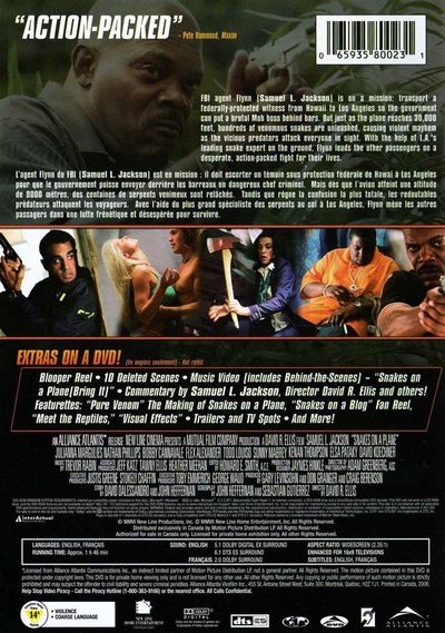 FBI agent Flynn (Samuel L. Jackson) is on a mission: transport a federally-protected witness from Hawaii to Los Angeles so the government can put a brutal Mob boss behind bars. But just as the plane reaches 30,000 feet, hundreds of venomous snakes are unleashed, causing violent mayhem as the vicious predators attack everyone in sight. With the help of L.A.'s leading snake expert on the ground, FLynn leads the other passengers on a desperate, action-packed fight for their lives.L’agent Flynn du FBI (Samuel L. Jackson) est en mission: il doit escorter un témoin sous protection fédérale de Hawaï à Los Angeles pour que le gouvernement puisse envoyer derrière les barreaux un dangereux chef criminel. Mais dès que l'avion atteint une altitude de 9000 mètres, des centaines de serpents vénimeux sont relâchés. Tandis que règne la confusion la plus totale, le redoutables prédateurs attaquent les voyageurs. Avec l'aide du plus grand spécialiste des serpents au sol à Los Angeles, Flynn mène les autres passagers dans une lute frénétique et désespérée pour survivre.