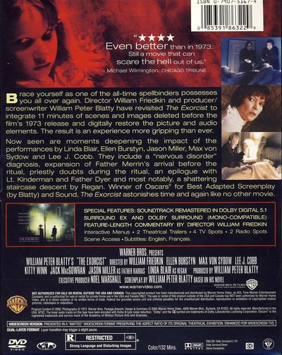 Brace yourself, as one of the all-time spellbinders possesses you all over again. Director William Friedkin and producer/screenwriter William Peter Blatty have revisited The Exorcist to integrate 11 minutes of scenes and images deleted before the film’s 1973 release and digitally restore the picture and audio elements. The result is an experience more gripping than ever.Now seen are moment deepening the impact of the performances by Linda Blair, Ellen Burstyn, Jason Miller, Max Von Sydow and Lee J. Cobb. They include a “nervous disorder” diagnosis, expansion of Father Merrin’s arrival before the ritual, priestly doubts during the ritual, an epilogue with Lt. Kinderman and Father Dyer and most notably, a shattering staircase descent by Regan. Winner of Oscars for Best Adapted Screenplay (by Blatty) and Sound, The Exorcist astonishes time and again like no other movie. |