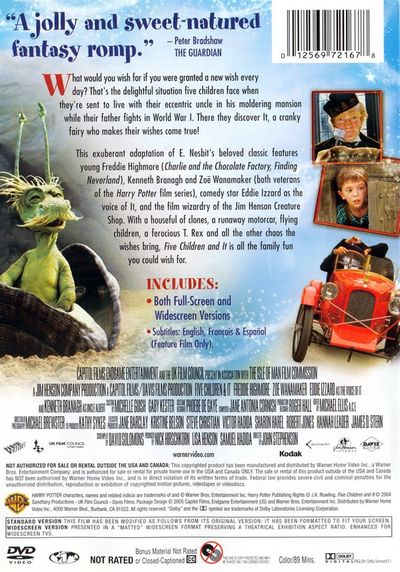 What would you wish for if you were granted a new wish every day? That's the delightful situation five children face when they're sent to live with their eccentric uncle in his moldering mansion while their father fights in World War I. There they discover It, a cranky fairy who makes their wishes come true!This exuberant adaption of E. Nesbit's beloved classic features young Freddie Highmore (Charlie and the Choclate Factory, Finding Neverland), Kenneth Branagh and Zoë Wanamaker (both veterns of the Harry Potter film series), comedy star Eddie Izzard as the voice of It, and the film wizardry of the Jim Henson Creature Shop. With a houseful of clones, a runaway motorcar, flying children, a ferocious T. Rex and all the other chaos the wishes bring, Five Children and It is all the family fun you could wish for.