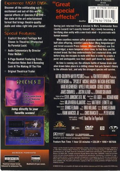 Having just returned from a mission to Mars, Commander Ross isn't exactly himself. He's slowly becoming a terrifying alien entity with a one-track mind--to procreate with human women!When countless women suffer gruesome deaths after bearing half-alien offspring, scientist Laura Baker and hired assassin Press Lennox use Eve, a more tempered alien clone , to find Ross and his virulent brood. But they underestimate Eve's maternal drive, and before long she escapes to mate with Ross in order to create a purer and unstoppable race that could spell doom for mankind.As time is running out, the ultimate battle of human brain over alien takes place in a chilling climax that puts Darwin's theory to the ultimate test...and only the strongest species will survive. |