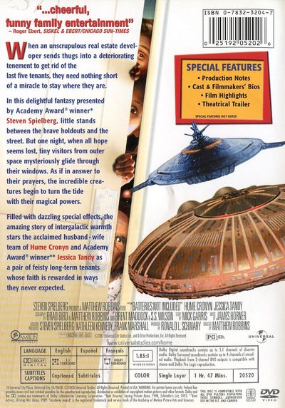 When an unscrupulous real estate developer sends thugs into a deteriorating tenement to get rid of the last five tenants, they need nothing short of a miracle to stay where they are.In this delightful fantasy presented by Steven Spielberg, directed by Matthew Robbins, little stands between the brave holdouts and the street. But one night, when all hope seems lost, tiny visitors from outer space mysteriously glide through their windows. As if in answer to their prayers, the incredible creatures begin to turn the tide with their magical powers.Filled with dazzling special effects, the amazing story of intergalactic warmth stars the acclaimed husband - wife team of Hume Croynyn and Academy Award winner Jessica Tandy as a pair of feisty long-term tenants whose faith is rewarded in ways they never expected. |
