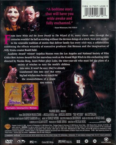 Saving The World From Witches Is A Tall Order For A Boy They've Turned Into A Mouse!From Snow White and The Seven Dwarfs to The Wizard Of Oz, many classic tales through the centuries wouldn't be half as exciting without the devious doings of a witch. Now add another to the venerable tradition of stories that deliver family fun every which way, a collaboration combining the effects wizardry of executive producer Jim Henson and the imagination of Will Wonka creator Roald Dahl.Academy Award winner Anjelica Huston won the Los Angeles and National Society of Film Critics Best Actress Awards for her marvelous work as the Grand High Witch in this enchanting fable directed by Nicolas Roeg. Jesen Fisher plays Luke, the nine-year-old who must foil the plans of a society of witches to turn the world's children into mice. It won't be easy: They've already transformed him into one! But some big bad witches may be no match for the resourcefulness of a single tiny rodent.
