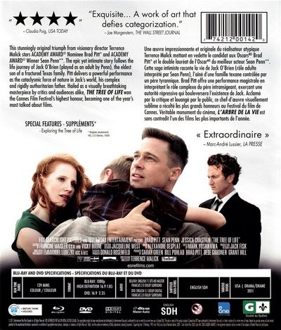 This stunningly original triumph from visionary director Terrence Malick stars ACADEMY AWARD® Nominee Brad Pitt and ACADEMY AWARD® Winner Sean Penn. The epic yet intimate story follows the life journey of Jack O'Brien (played as an adult by Penn), the eldest son of a fractured Texas family. Pitt delivers a powerful performance as the cataclysmic force of nature in Jack's world, his complex and rigidly authoritarian father. Hailed as a visually breathtaking masterpiece by critics and audiences alike, THE TREE OF LIFE won the Cannes Film Festival's highest honour, becoming one of the year's most talked about films.Une oeuvre impressionnante et originale du réalisateur atypique Terrence Malick mettant en vedette le candidat aux Oscars(md) Brad Pitt' et le double lauréat de l'Oscar(md) du meilleur acteur Sean Penn. Cette saga intimiste raconte la vie de Jack O'Brien (role adulte interprété par Sean Penn), l'aîné d'une famille texane contrôlée par un père tyrannique. Brad Pitt offre une performance magistrale en interprétant le role complexe du père intransigeant, exerçant une autorité répressive qui bouleversera l'existence de Jack. Acclamé par la critique et louangé par le public, ce chef-d'oeuvre visuellement sublime a récolté les plus grands honneurs au Festival du film de Cannes. Véritable monument du cinema, L'ARBRE DE LA VIE est sans contredit l'un des films les plus importants de l'année.