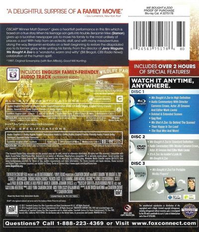 Oscar® winner Matt Damon gives a heartfelt performance in this film which is based on a true story. When his teenage son gets into trouble, Benjamin Mee (Damon) gives up a lucrative newspaper job to move his family to the most unlikely of places: a zoo! With help from an eclectic staff, and with many misadventures along the way, Benjamin embarks on a fresh beginning to restore the dilapidated zoo to its former glory, while uniting his family. From the director of Jerry Maguire, We Bought A Zoo is a "wonderful, warm and witty" (Bill Bregoli, CBS Radio News) celebration of the human spirit. |