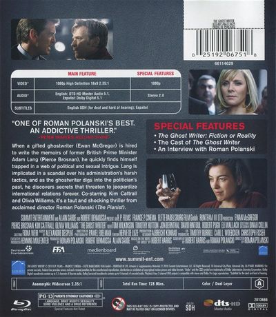 When a gifted ghostwriter (Ewan McGregor) is hired to write the memoirs of former British Prime Minister Adam Lang (Pierce Brosnan), he quickly finds himself trapped in a web of political and sexual intrigue. Lang is implicated in a scandal over his administration's harsh tactics, and as the ghostwriter digs into the politician's past, he discovers secrets that threaten to jeopardize international relations forever. Co-starring Kim Cattrall and Olivia Williams, it's is a taut and shocking thriller from acclaimed director Roman Polanski (The Pianist). |