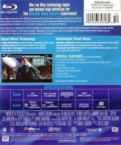 Keanu Reeves stars as an L.A.P.D. SWAT team specialist who is sent to diffuse a bomb that a revenge-driven extortionist (Dennis Hopper) has planted on a bus. But until he does, one of the passengers (Sandra Bullock) must keep the bus speeding through the streets of Los Angeles at more than 50 miles per hour - or the bomb will detonate! |