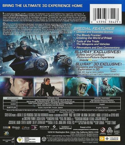 In a post-apocalyptic world, a savage war between man and vampire has raged for centuries. A warrior priest (Paul Bettany) receives word of fresh attacks, but now it's personal; his niece has been kidnapped by a new hive of merciless vampires. To save her, he must break his vow of peace and hunt down the hive before it's too late. Based on the acclaimed graphic novel and packed with bloodthirsty action, this full throttle crusade takes you on the hunt for a deadly new breed of killer. |