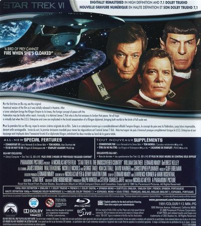 For The First Time On Blu-Ray, see the original theatrical version of the film as it was initially released in theatres.After a lunar cataclysm brings the Klingon Empire to its knees, the foreign concept of peace with the Federation may be finally within reach. Ironically, it is Admiral James T. Kirk who is the first emissary to broker that peace. Yet all hope is virtually lost when the U.S.S. Enterprise and crew are implicated in the brutal assassination of a Klingon diplomat, bringing both worlds to the brink of full-scale war. |