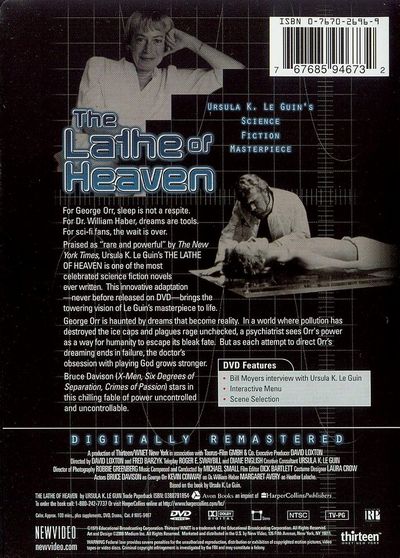 For George Orr, sleep is not a respite. For Dr. William Haber, dreams are tools. For sci-fi fans, the wait is over.Praised as "rare and powerful" by The New York Times, Ursula K. Le Guin's The Lathe Of Heave is one of the most celebrated science fiction novels ever written. This innovative adaptation -- never before released on DVD -- brings the towering vision of Le Guin's masterpiece to life.George Orr is haunted by dreams that become reality. In a world where pollution has destroyed the ice caps and plagues rage unchecked, a psychiatrist sees Orr's power as a way for humanity to escape it's bleak fate. But as each attempt to direct Orr's dreaming ends in failure, the doctor's obsession with playing God grows stronger.Bruce Davison (X-Men, Six Degrees Of Separation, Crimes of Passion) stars in this chilling fable of power uncontrolled and uncontrollable.