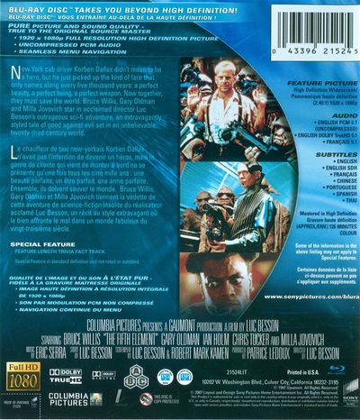 New York cab driver Korben Dallas didn't mean to be a hero, but he just picked up the kind of fare that only comes along every five thousand years: a perfect beauty, a perfect being, a perfect weapon. Now, together, they must save the world.Bruce Willis, Gary Oldman and Milla Jovovich star in acclaimed director Luc Besson's outrageous sci-fi adventure, an extravagantly styled tale of good against evil set in an unbelievable twenty-third century world. |