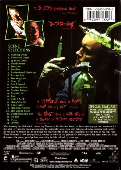 After causing the Miskatonic University Massacre, Dr. Herbert West has been serving a prison sentence for the past 14 years. Far from overcoming his scientific obsession with bringing dead organisms back to life, he has had no choice but to continue his experiments on the only specimens he can find in his cell: rats. When Howard, a new young doctor, comes to work as the prison MD and requests his assistance, Dr. West discovers the young protege has something he left behind 14 years ago... |