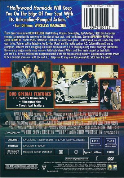 "Hollywood Homicide will keep you on the edge of your seat with it's adrenaline-pumped action." - Earl Dittman, Wireless MagazineFrom Oscar-nominated Ron Shelton (Best Writing, Original Screenplay, Bull Durham, 1989) this hot action comedy is guaranteed to keep you on the edge of your seat...and in stitches. Starring Harrison Ford and Josh Hartnett, Hollywood Homicide redefines the buddy-cop genre. In Hollywood, no one is who they really want to be. Veteran police detective Joe Gavilan (Ford) and his rookie partner K.C Calden (Hartnett) are no exception. Between Joe's struggling real estate business and K.C.'s fledgling acting career and yoga instruction, they've got a major murder case to solve. With both Internal Affairs and their main suspect on their tails, Joe and K.C. have to infiltrate the dangerous world of the hip-hop recording industry. Juggling two careers proves to be a comical adventure, with Joe and K.C. desperate to stay alive long enough to catch their big break. |