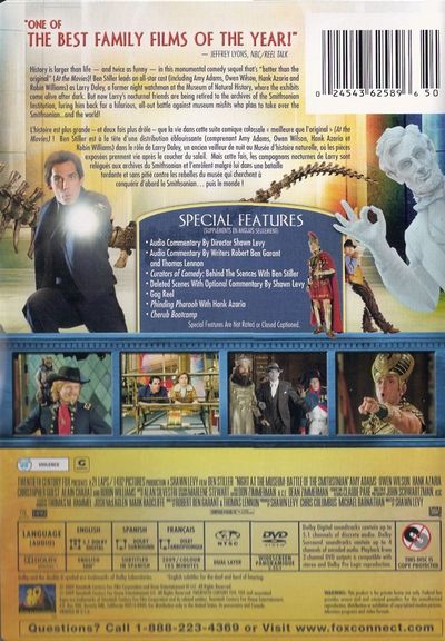 History is larger than life - and twice as funny - in this monumental comedy sequel thats "better than the original" (At the Movies)! Ben Stiller leads an all-star cast (including Amy Adams, Owen Wilson, Hank Azaria and Robin Williams) as Larry Daley, a former night watchman at the Museum of Natural History, where the exhibits come alive after dark. But now Larry's nocturnal friends are being retired to the archives of the Smithsonian Institution, luring him back for a hilarious, all-out battle against museum misfits who plan to take over the Smithsonian...and the world!L'histoire est plus grande - et duex fois plus drole - que la vie dans cette suite comique colossale << meilleure que l'original >> (At the Movies)! Ben Stiller est a la tete d'une distribution eblouissante (comprenant Amy Adams, Owen Wilson, Hank Azaria and Robin Williams) dans le role de Larry Daley, un ancien veilleur de nuit au Musee d'histoire naturelle, ou les pieces exposees prennent via apres le coucher du soleil. Mais cette fois, les compagnons nocturnes de Larry sont relegues auz archives du Smithsonian et l'enrolent malgre lui dans une bataille tordante et sans pitie contre les rebelles du musee qui cherchent a conquerir d'abord le Smithsonian...puis le monde! |