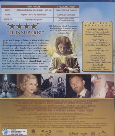In a wondrous parallel world where witches soar the skies and Ice Bears rule the frozen North, one special girl is destined to hold the fate of the universe in her hands. When Lyra Belacqua (Dakota Blue Richards) becomes the keeper of the Golden Compass, she discovers that her world - and all those beyond - is threatened by the secret plans of Mrs. Coulter (Nicole Kidman). With the help of Lord Asriel (Daniel Craig) and a group of unlikely allies ready to stand at her side, Lyra embarks on an extraordinary quest that celebrates friendship and courage against all odds. |