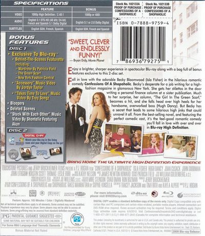 Enjoy a brighter, sharper experience in spectacular Blu-ray along with a bag full of exclusive bonus features. Fall in love with the adorable Becky Bloomwood (Isla Fisher) in the hilarious romantic comedy Confessions Of A Shopaholic. Becky's desperate for a job writing for a high-fashion magazine in glamorous New York. She gets her stilettos in the door writing a personal finance column at a sister publication. Much to her surprise, her column, "The Girl In The Green Scarf," becomes a hit, and she falls head over high heels for her handsome, overworked boss (Hugh Dancy). But Becky has a secret that leads to some hilarious high jinks that could unravel it all. From the best-selling novel, and featuring the perfect comedic cast, it's the feel-good romantic comedy you'll fall in love with over and over in Blu-ray High Definition. |