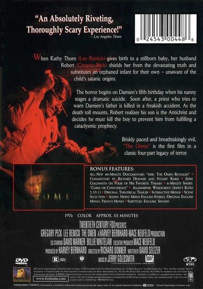 "An Absolutely Riveting Thoroughly Scary Experience!" -Los Angeles TimesWhen Kathy Thorn (Lee Remick) gives birth to a stillborn baby, her husband Robert (Gregory Peck) shields her from he devastating truth and substitutes an orphaned infant for their own -- unaware of the child's satanic origins.The horror begins on Damien's fifth birthday when his nanny stages a dramatic suicide. Soon after, a priest who tries to warn Damien's father is killed in a freakish accident. As the death toll mounts, Robert realizes his son is the Antichrist and decides he must kill the boy to prevent him from fulfilling a cataclysmic prophecy.Briskly paced and breathtakingly evil, The Omen is the first film in a classic four-part legacy of terror. |